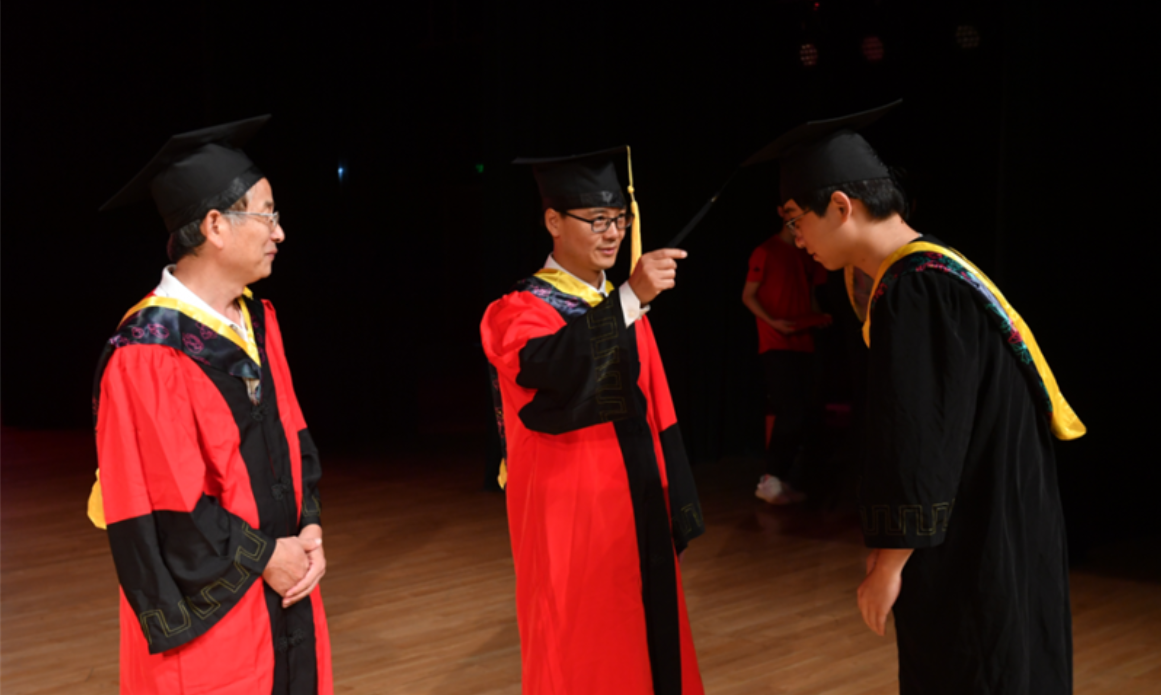 校歌》,歌声悠扬,字字铿锵。学院学术委员会的四位老师王伶、李建瀛、冯晓毅、周巍为同学们一个个拨穗、颁发毕业证、合影留念。