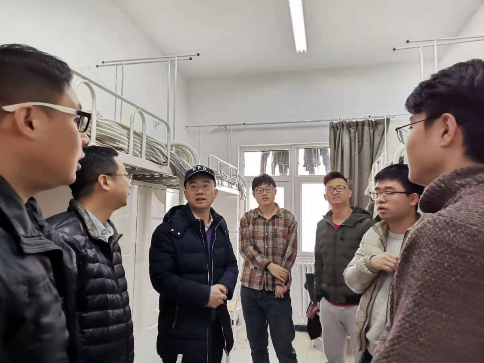 在学生宿舍,院领导与学生亲切交谈,认真查看了学生的住宿环境,仔细了解宿舍供暖及宿舍安全情况。李春林挨个询问了留校学生家乡的疫情情况,叮嘱大家在校期间时刻注意科学防控疫情,要特别注意身体健康,加强身体锻炼,尽量减少外出活动。彭亮强调要严格遵守疫情防控各项规章制度,认真履行外出审批手续,提醒学生注意宿舍用电安全及个人卫生,互相关心关爱,随时与家人、导师、辅导员保持密切的联系,遇到任何问题可以及时向导师、辅导员及学院负责人反映情况,学院将及时解决落实。