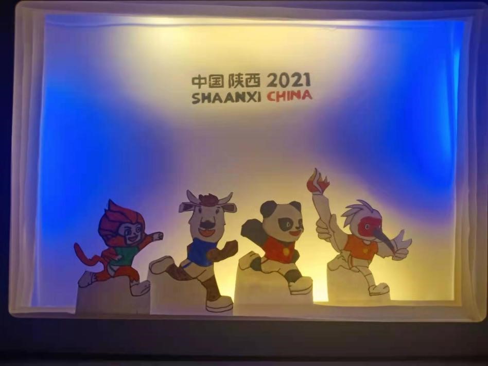作品简介:作品以十四运为主题,通过纸雕的形式体现了本次运动会的标志、吉祥物、举办地点和比赛项目,同时采用了可动机关的形式展现了游泳、田径、体操和跳水的比赛内容,增强了作品的观赏性与趣味性。
