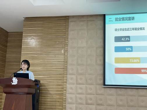 毕业生总体就业率达99%以上,航空、航,天、航海、兵器、电子等国防科技和工业、通信等国家重点领域就业比例达73%以上。在择业过程中,她还提醒各位同学要抢抓机遇、理智抉择、审慎签约、诚信为本,在收集就业信息时要多方面多渠道出发,在面试过程中要保持自信,签订三方则一定要认真谨慎。