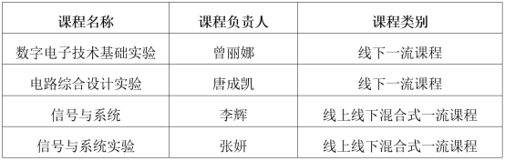 共有4门课程入选,其中《数字电子技术基础实验》《电路综合设计实验》2门课程被认定为线下一流课程,《信号与系统》《信号与系统实验》2门课程被认定为线上线下混合式一流课程。
