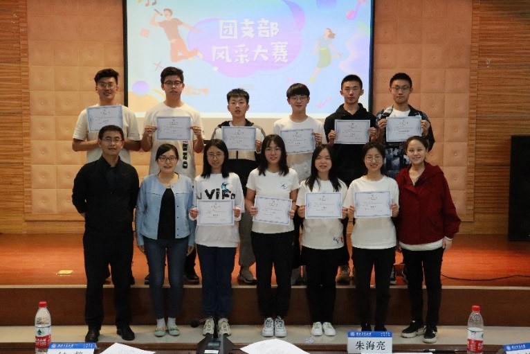 团委、学生会在八、九院报告厅举行了主题为“迈进新时代,焕发新风采”的团支部风采展示大赛决赛,赛场气氛高昂,同学们积极踊跃,热情似火。大赛邀请到了决赛班级的班主任李长侑、侯静、朱海亮以及院团委书记樊晔作为评委。