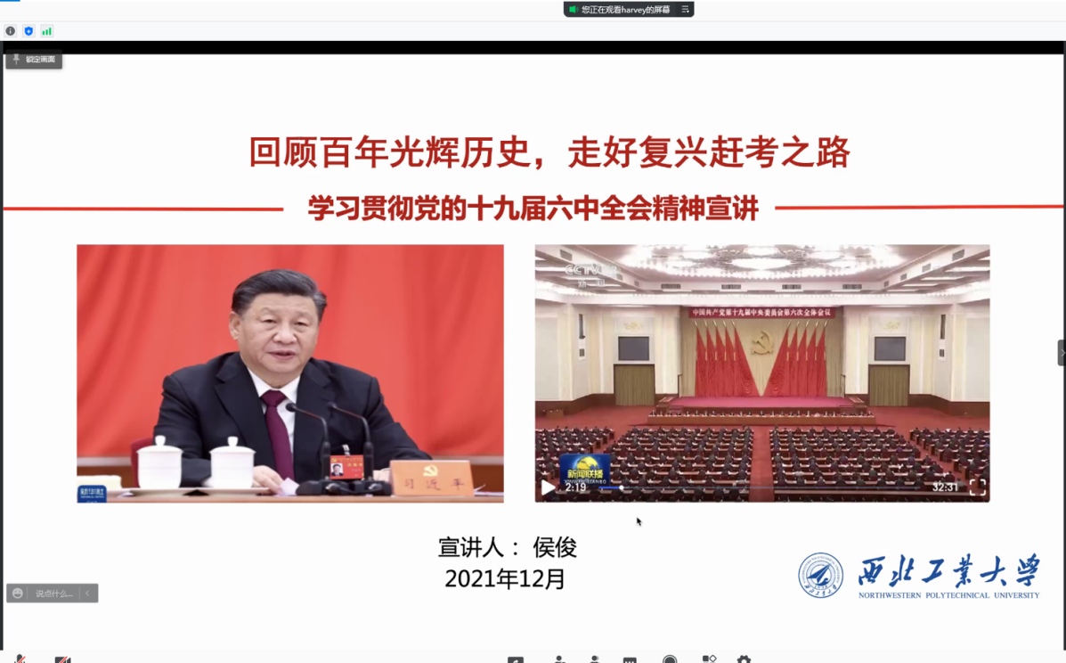 信息工程系党支部在线开展了“贯彻落实党的十九届六中全会精神,做好疫情防控工作”专题学习活动,学院党委书记侯俊同志为支部全体党员讲授了“回顾百年光辉历史,走好复兴赶考之路”的专题党课,宣讲党的十九届六中全会精神。会议由支部书记戴玉超同志主持。侯俊从一个初心使命,两个确立,三个“需要”,三个《决议》等方面,深入阐释了《中共中央关于党的百年奋斗重大成就和历史经验的决议》的主要精神,回顾了中国共产党的百年奋斗和伟大成就,学习了中国共产党的百年奋斗历史经验和精神财富,总结了中国共产党的百年奋斗历史意义和复兴新程。号召支部党员以史为鉴、开创未来,埋头苦干、勇毅前行,立足自身岗位为实现第二个百年奋斗目标、实现中华民族伟大复兴的中国梦而不懈奋斗。
