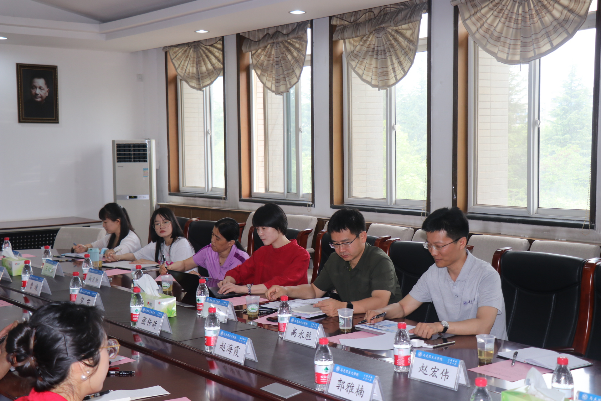 一行人的到来表示欢迎,侯俊介绍了此次调研的主要目的:加速推进一流本科人才培养行动计划和一流研究生人才培养行动计划,学习马院在思政教育、思政课程和课程思政同向同行建设方面的经验做法。蒲传新从师资队伍、思政课教学、学科建设等方面介绍了马克思主义学院整体情况,贺苗对目前马克思主义学院已经开展的思政课程及课程思政情况、取得的成效以及下一步举措做了详细的介绍。