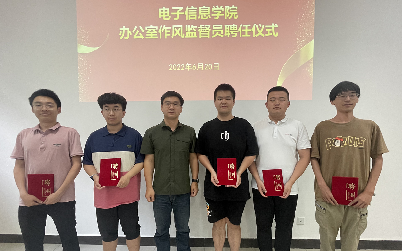 学院经过师生推荐,最终确定丁君、陈绍炜、杜永乾、王毅、张建东、林文晟六位老师以及杨铭月、宋超、主中尚、古淳月、李一昌五位学生为学院办公室作风监督员。聘任仪式上,侯俊为到场的作风监督员颁发了证书,宣读了学院办公室作风监督员岗位职责。接着,与会人员以作风监督为主题开展座谈研讨,受聘人员就如何履行好作风监督工作提出建设性意见并表态发言。