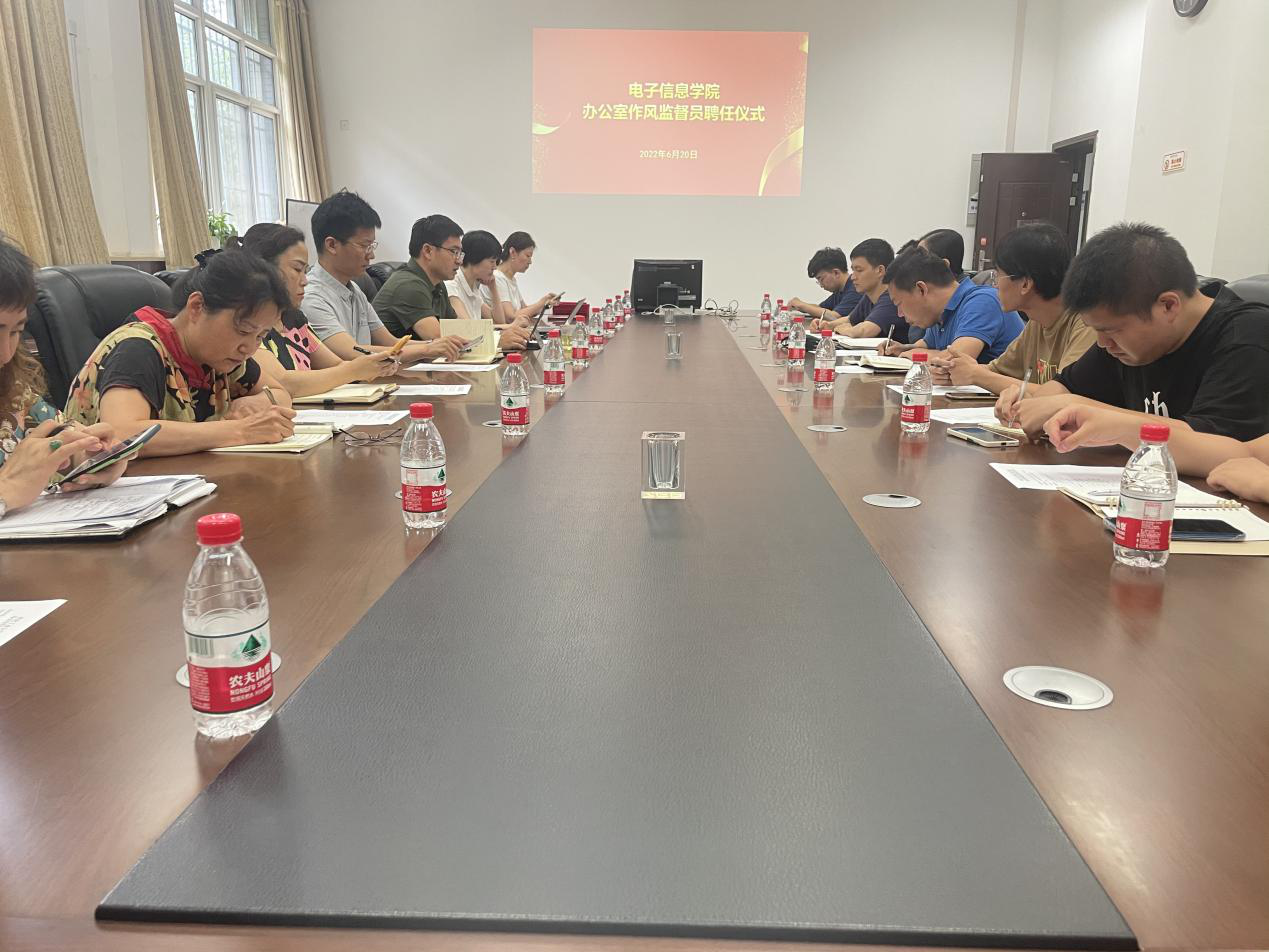 召开办公室作风监督员聘任仪式,学院党委书记侯俊、副书记高敏、副院长高永胜以及教师代表、学生代表参加了此次会议,会议由侯俊主持。