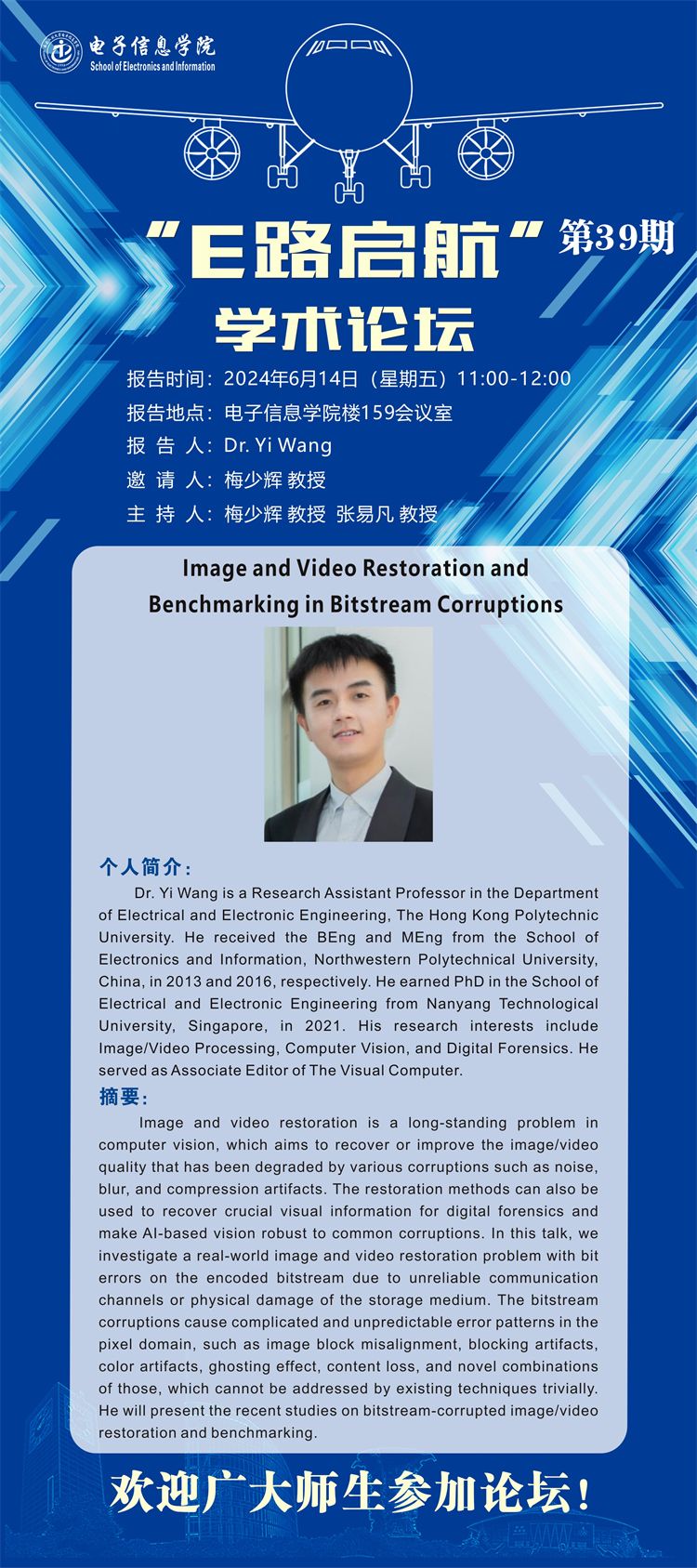 “E路启航”学术论坛第39期--lmage and Video Restoration and Benchmarking in Bitstream Corruptions