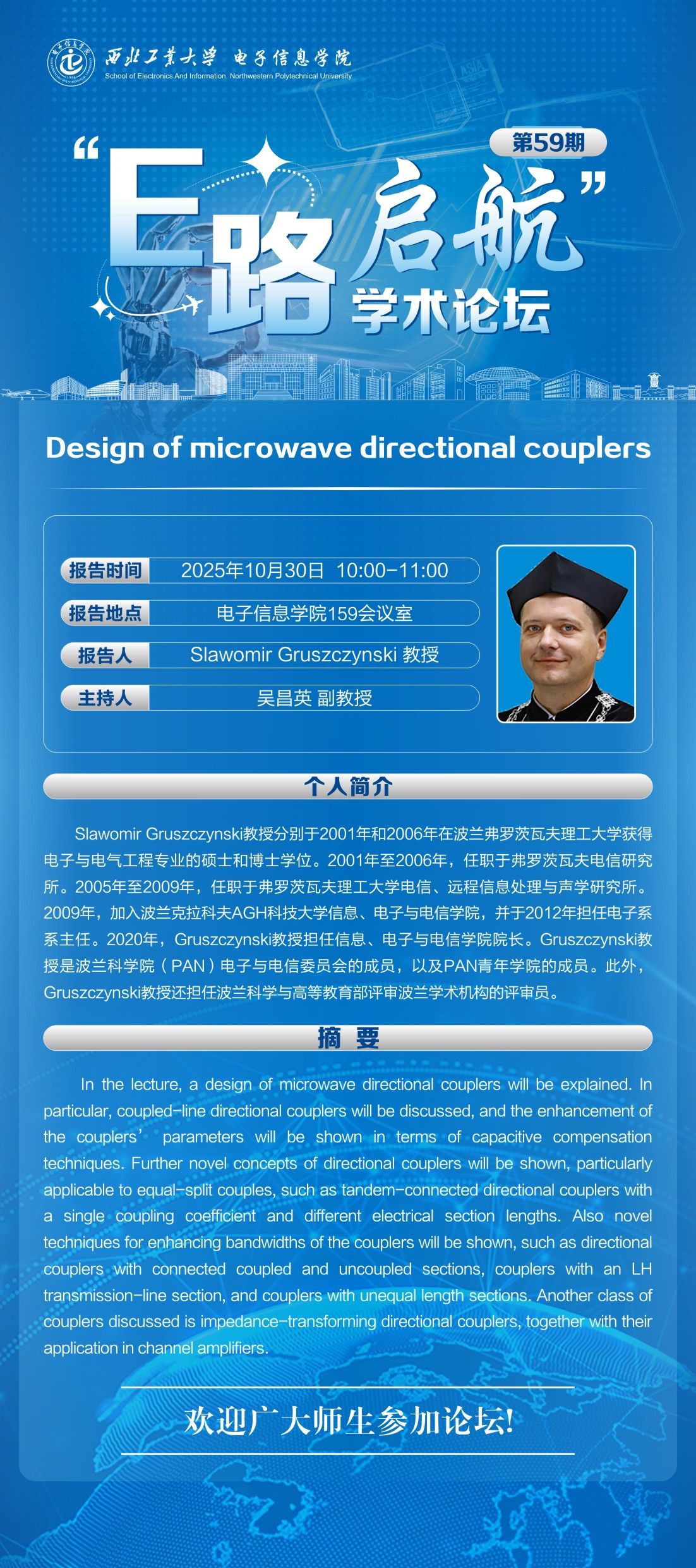 “E路启航”学术论坛第59期——Design of microwave directional couplers