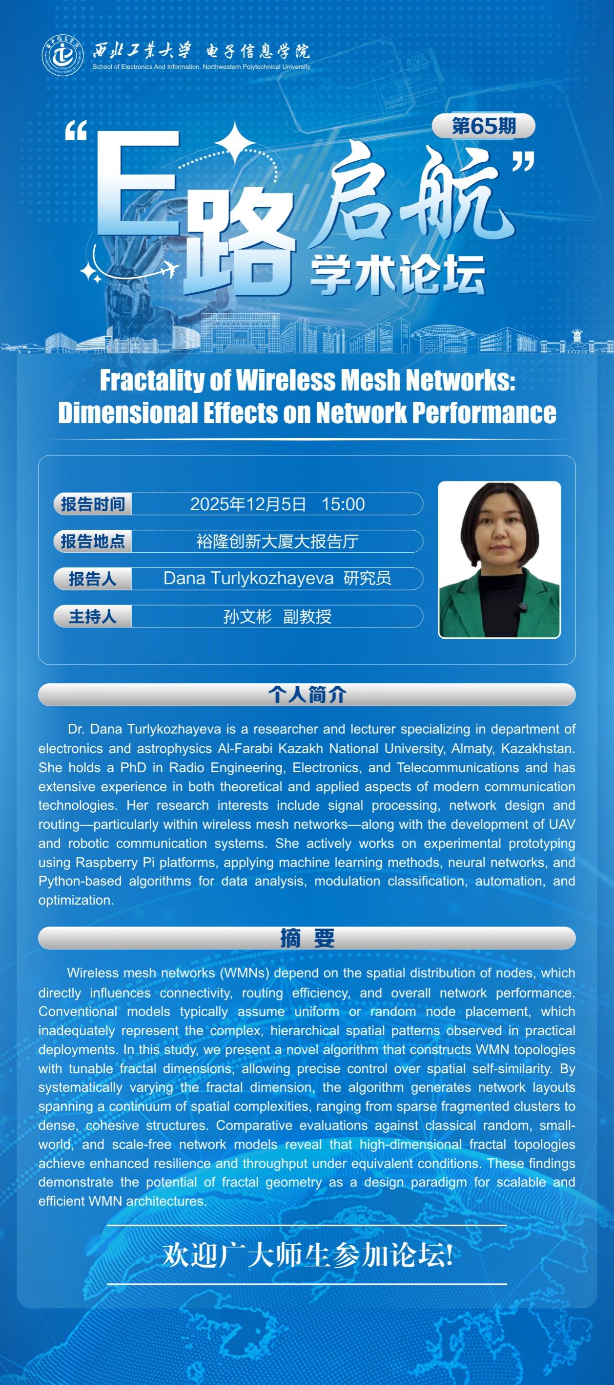 “E路启航”学术论坛第65期——Fractality of Wireless Mesh Networks: Dimensional Effects on Network Performance