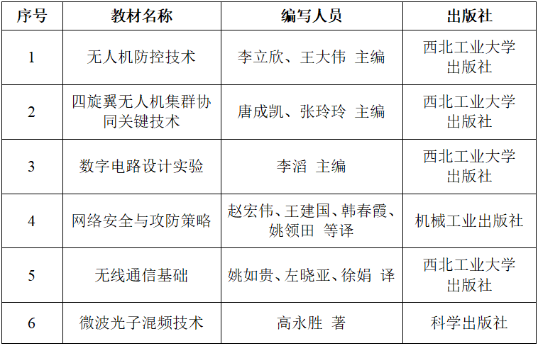 近日,教务处公布了西北工业大学“十四五”规划教材(第一批次)认定结果,在前期个人申报、学院审核推荐基础上,学校组织专家评审和认定,49 部教材被认定为西北工业大学“十四五”规划教材(第一批次)。我院李立欣、唐成凯、李滔、赵宏伟、姚如贵、高永胜等老师申报的6部教材入选,数量位居全校首位!