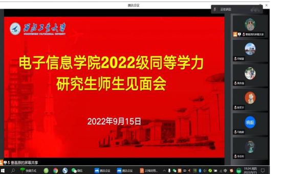 9月15日晚,电子信息学院2022级同等学力研究生师生见面会于线上顺利召开。电子信息学院党委书记侯俊、院长王伶、研究生导师代表、研究生教学秘书以及36名同等学力研究生新生共同参加。会议由副院长姚如贵主持。