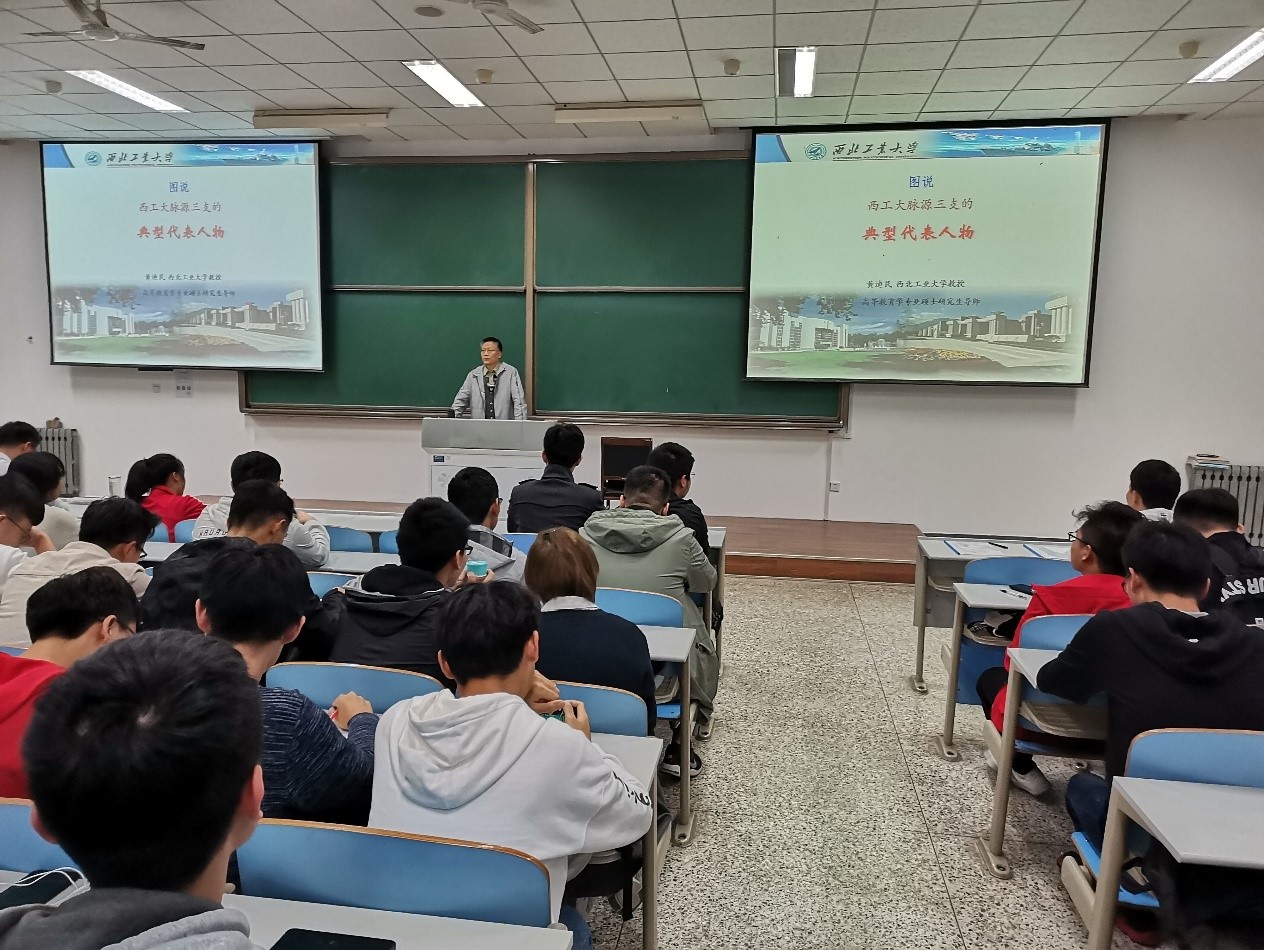 课程尾声,黄教授说到,西工大作为全国唯一一所以航空、航天、航海工程教育为特色的国防高校,继承了“脉源三支”的历史文化结晶。刘海滨书记廉洁自律,不忘初心,忠诚党的事业的崇尚品格;寿松涛校长顾全大局,举院西迁,献身国防教育的感人精神;唐铎将军献身革命,身经百战,在蹉跎岁月中坚守信念的坚强意志,都给今天的我们留下了深刻的印记,我们要以这三支脉源为榜样,传承老一辈人的光荣传统和优良作风,弘扬爱国奋斗精神,为学校“双一流”建设而努力奋斗,建功立业新时代!