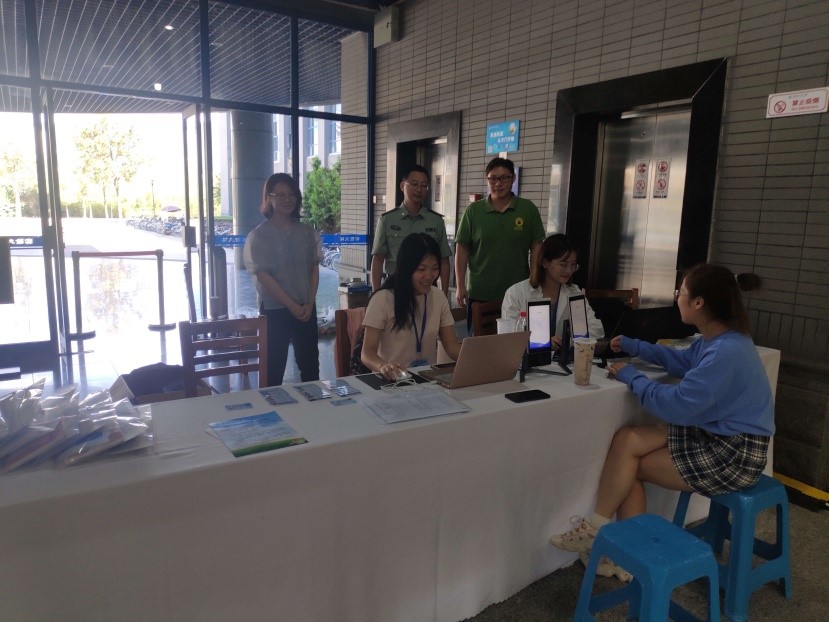 电子信息学院党委副书记彭亮来到现场询问电子信息学院研究生迎新工作情况。各位迎新工作人员分工明确,认真负责,详细地为各位新生注册登记、发放物资、解答问题,迎新工作高效进行。