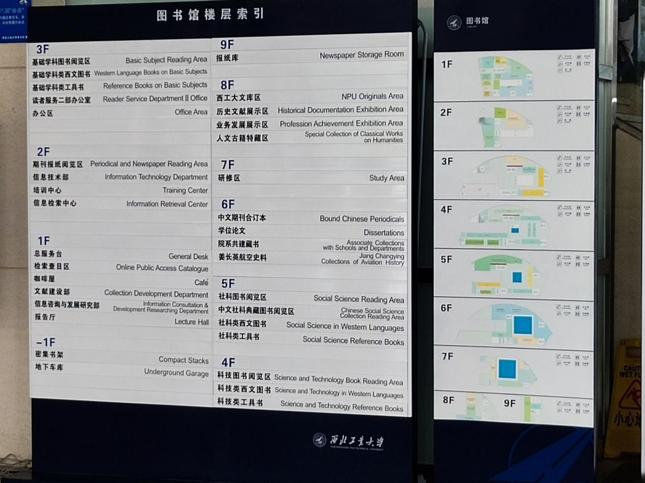 图书馆:西北工业大学长安校区的图书馆号称亚洲最大水上图书馆,这里不仅是读书的好地方,同时也是自习的绝佳地点。从馆内分布情况来看,一层是总服务台,处理图书借阅等事物;二层是报纸期刊阅览区,注意这些报纸期刊只能在馆内阅读呦;三层四层分别是基础学科图书阅览区和科技图书阅览区,你可以在这里找到现代科学技术有关书籍,但是这里的工具书是不外借的呦;五层是社科图书阅览区,如果你爱好文学,那么你一定会爱上这个地方。五层还有一些典藏书籍,值得你去翻阅;六层是综合阅览区,包括部分社科类图书、学位论文和建筑专业的一些书籍。除此之外,七层还有研修室等着大家,不过需要提前预约。图书馆是个好地方,图书馆的大门永远为你敞开!