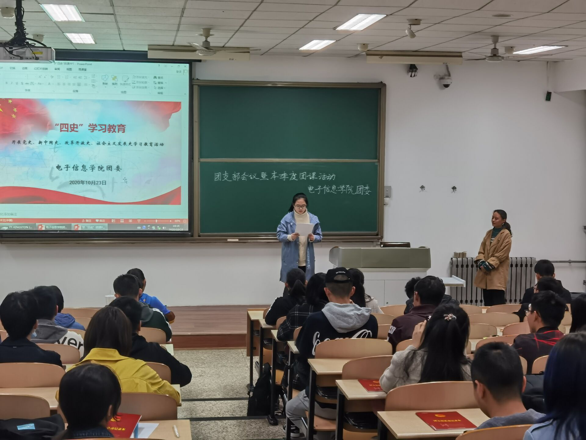 勤俭节约,贯彻“四史”教育是当代新青年必备的基本素养,也是彰显学校师生思想文化素养软实力的方式。2020年10月23日,西北工业大学电子信息学院团委于西北工业大学长安校区教学西楼C306教室开展了本季度的团课。