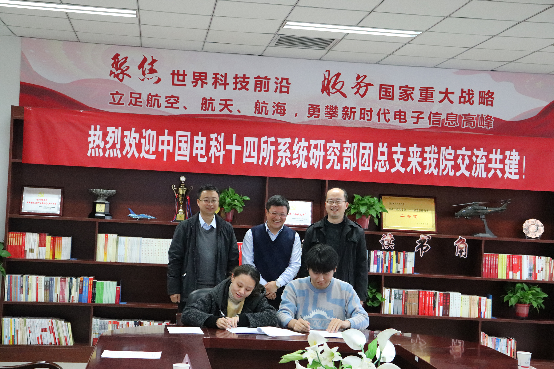 11月19日下午,西北工业大学电子信息学院与中国电子科技集团第十四研究所(中电十四所)系统研究部工作交流暨团支部共建交流签约仪式,在电子信息学院432会议室举行。电子信息学院党委书记李春林、党委副书记彭亮、院长助理周世刚、团委书记樊晔,十四所系统研究部党总支书记夏贤江、团总支书记张功成,以及电子信息学院部分学生代表参加会议。会议由彭亮主持。