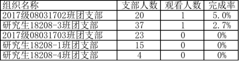 然而,本科17级、研究生级仍有许多班级完成率低于50%,希望这些班级在之后的学习中能够提高学习积极性,向完成率较高的团支部汲取经验,按时完成学习任务。