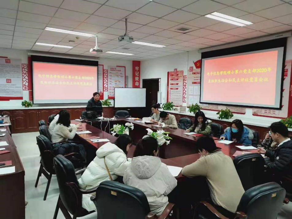 硕士第六党支部在432会议室召开了2020年度组织生活和民主评议党员生活会。全体支委、党员参加,会议由支部书记高路强主持