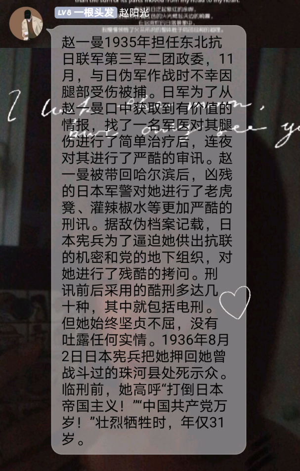 虽然英雄已经离我们远去,但是他们顽强不屈、 英勇献身的革命精神依旧在深深地感染着我们,无论是现在还是未来,他们都将永远活在我的心中, 激励我前行,让我珍惜这来之不易的生活。