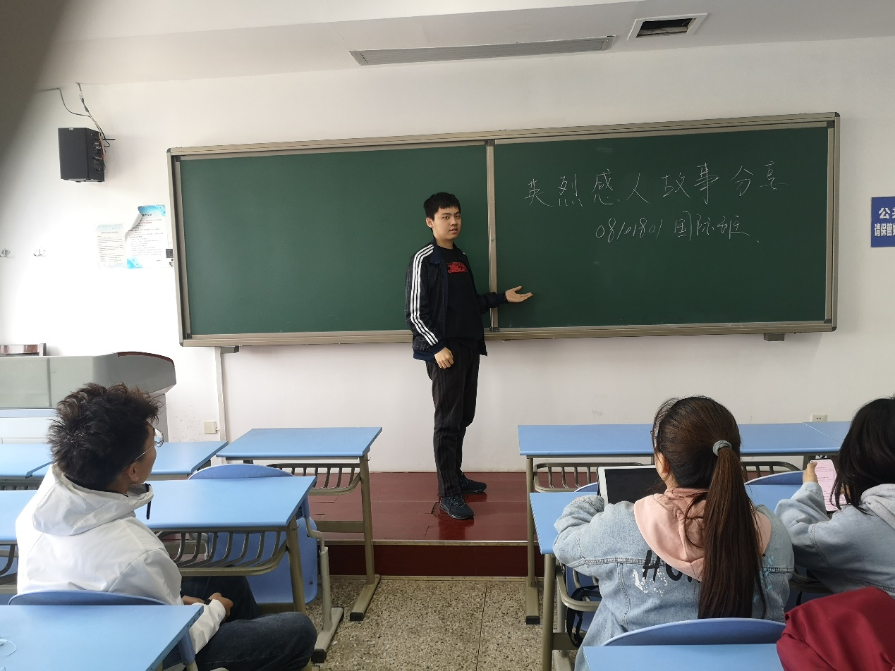 电信八班的于4月4日下午在教学西楼B座106教室举行英烈故事分享活动。班长姚宇享了邱少云同志和周恩来总理的故事,号召大家继承先烈遗志。