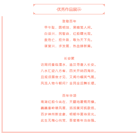 为庆贺中国共产党百年华诞及中华人民共和国第十四届运动会的顺利开展,西北工业大学电子信息学院团委组织举办了以“诗百年风华,曲十四全运”为主题的诗词创作活动,得到了全校同学的广泛支持。