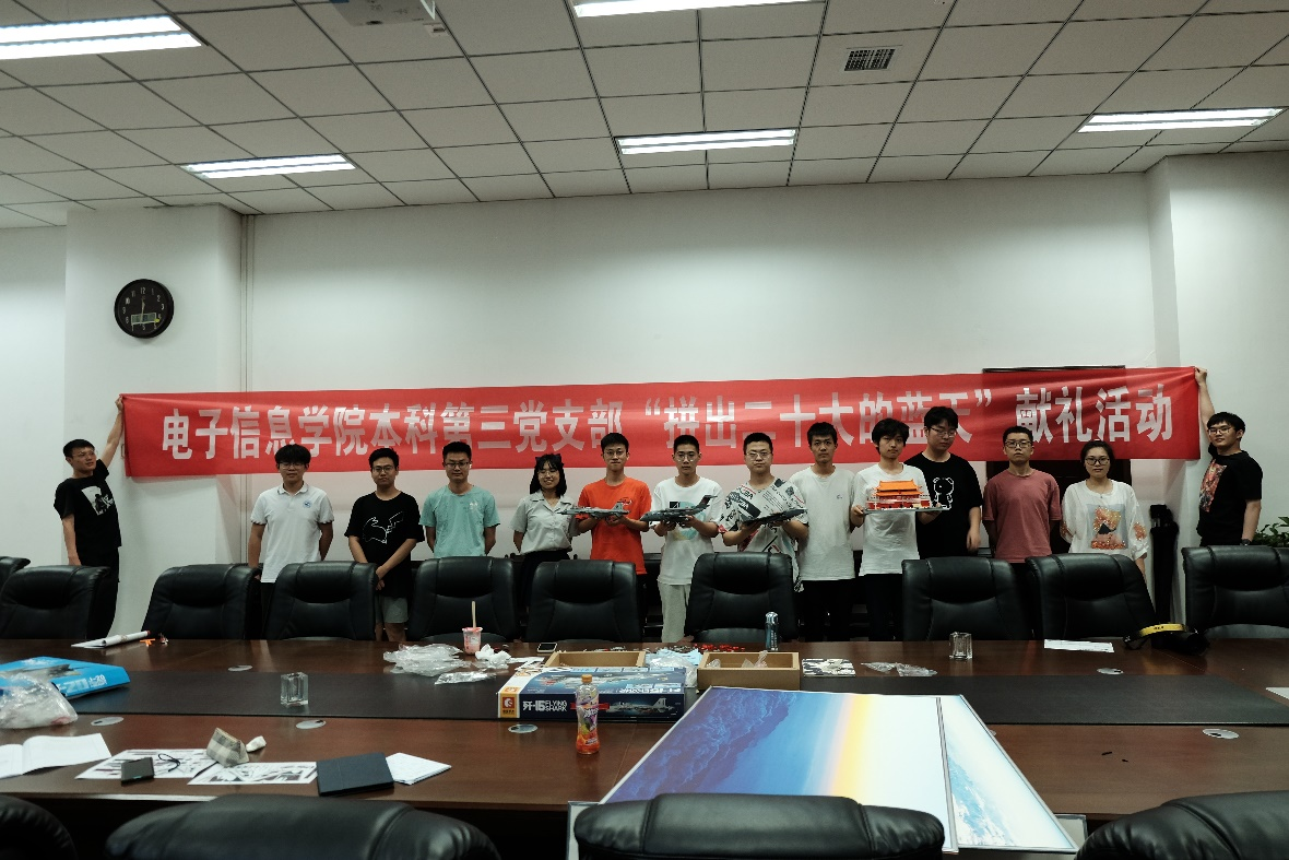 为迎接党的二十大胜利召开;致敬“忠诚奉献、逐梦蓝天”的航空报国精神,深刻回顾我校“公诚勇毅,三实一新”的校训校风,电子信息学院本科第三党支部举办了“拼出二十大的蓝天”献礼活动,从劳育的角度组织同学们使用积木拼出天安门和歼20、运20、歼15等国之重器,学习和继承西工大航空人“矢志追求、不懈奋斗”的优良精神。