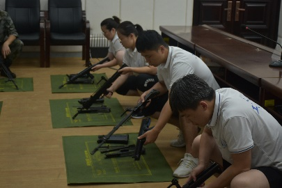 枪,军人的第二生命。上午9时,实践队员在教官带领下步入阶梯教室就国产95-1步枪射击原理、零部件组成和枪械保养进行学习,并完成步枪拆卸、组装的考核。在步枪拆装讲解示范过程中,实践队员以严肃认真的态度对待每一个细节,仔细观察,踊跃提问。在步枪拆卸、组装的考核过程中,实践队员均取得优异成绩,其中一名女队员在枪械拆装考核拔得头筹,巾帼不让须眉。实践队员在本次学习实践中收获颇多,不仅在实际操作方面实现了从零到有的飞跃,更在思想上对军人荣誉有了更深层次的认知:枪,代表着军人的荣誉,凝聚着军人的感情,在精神层面上与军人高度融合。