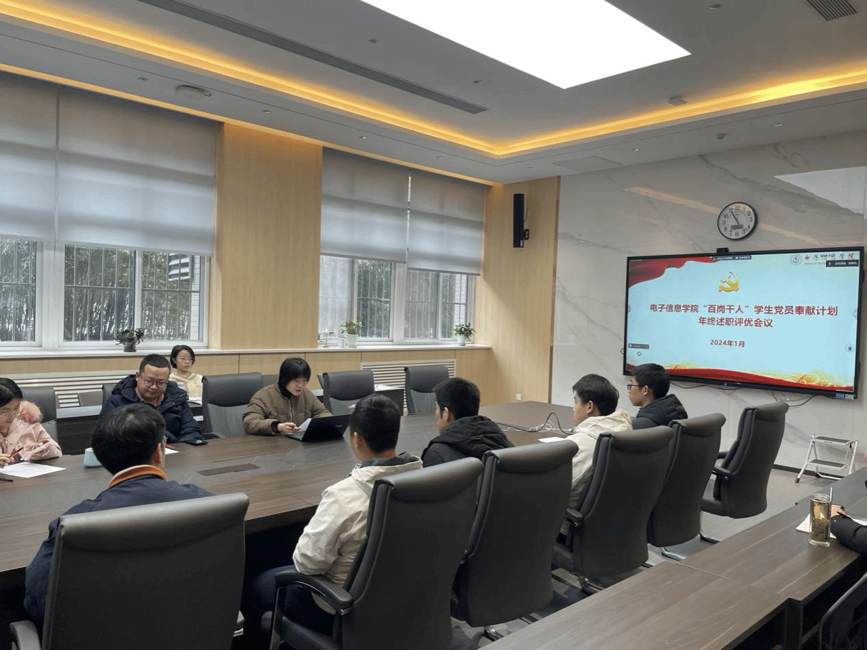 1月17日下午,电子信息学院召开“百岗千人”学生党员奉献计划述职评优会议。党委副书记高敏、辅导员支元杰、党务秘书王心怡以及各支部推荐评优的16名学生党员参加会议。