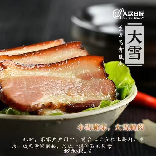 大雪习俗腌腊肉。“小雪腌菜,大雪腌肉。”民间有在大雪节气腌肉的习俗。大雪时节天气寒冷,空气温度比较低,适合腌肉,不用担心肉质变质。冰雪活动。鹅毛大雪悄无声息地落下,地面和屋顶通常已经积了厚厚地一层雪,和冰雪有关的各种活动也开始了,比如堆雪人、打雪仗、滑冰等。围炉煮茶。在这大雪纷飞的时节,一家人或三五好友围坐于暖炉旁,壶中茶水翻滚,热气腾腾。大家一边品尝着茶点,一边分享着生活的喜悦,欢声笑语在屋内回荡,让寒冷的冬日充满了温馨与温情。