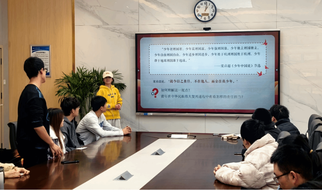 讲解结束后,同学们结合自身专业与发展情况,积极分享自己关于青年人如何担当时代责任的看法,进一步深入体会新时代下青年所肩负的责任,更加坚定理想信念。发展没有止境,实践没有止境,奋斗也不会有止境。经过此次团日活动,同学们将不断提升自身素质,锤炼品格修养,做到知行合一,争做优秀社会主义接班人。