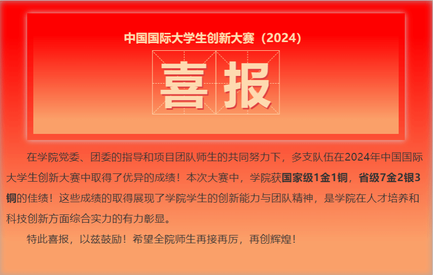 喜报!我院在中国国际大学生创新大赛(2024) 取得历史突破!