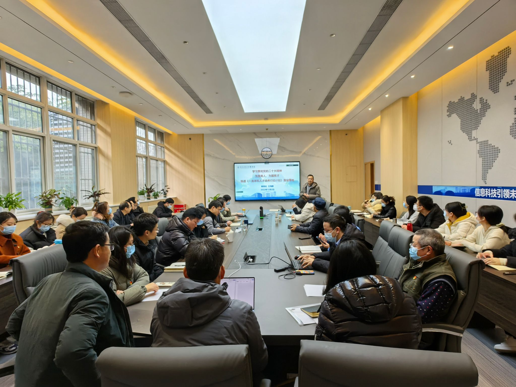 2022年12月2日,电子信息学院特邀学校党的二十大宣讲团成员、教务处处长王海鹏到学院进行党的二十大精神宣讲。本次宣讲活动在学院楼119会议室举行,由学院党委书记侯俊主持。院长王伶、党委副书记高敏、副院长姚如贵、张洵颖、高永胜以及各教师支部委员、学院办公室人员、非党员青年教师参加了宣讲会。会议通过“线上+线下”相结合的形式开展。