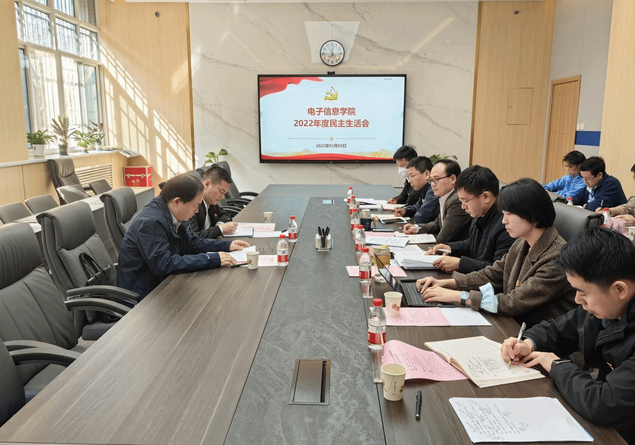3月8日上午,电子信息学院在学院楼119会议室召开2022年度领导班子民主生活会,学校党委常委、副校长杨益新,督导组成员段利兵到会督导,学院领导班子成员、党委委员、教职工党支部书记等参加会议。会议由学院党委书记侯俊主持。