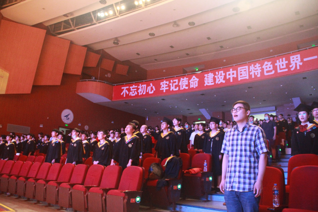 风雨萃英路,薪火传后人。中华灿烂,工大无疆!电子信息学院2020届全体本科毕业生合唱《西北工业大学校歌》,歌声悠扬,字字铿锵。学院学术委员会的四位老师王伶、李建瀛、冯晓毅、周巍为同学们一个个拨穗、颁发毕业证、合影留念。