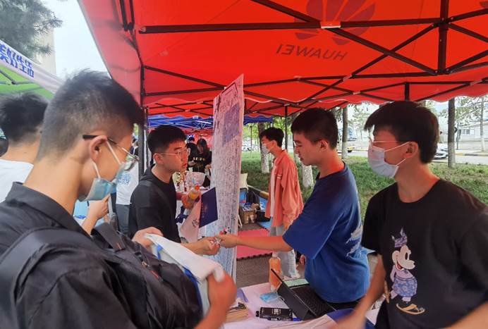 外场咨询活动如火如荼,各位工作人员为新生细致讲解报到及入学问题,为新生在学校的生活提供咨询帮助。朝气蓬勃的新同学领取了学院准备的“入学大礼包”,并在签名板上留下自己的“开学第一笔”。