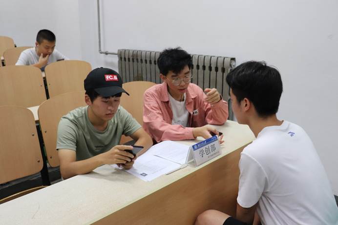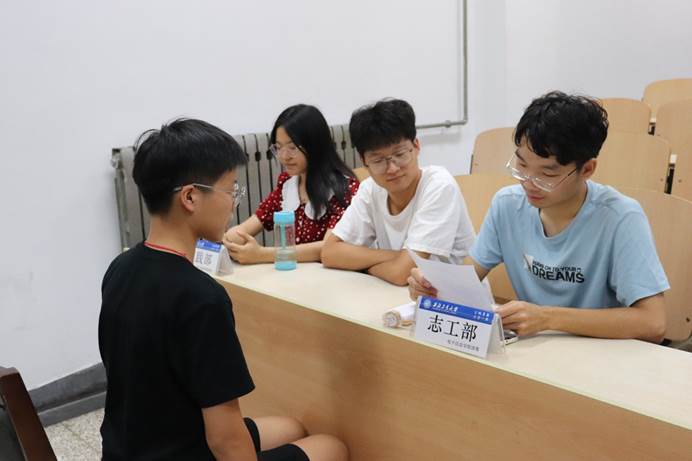经过2天的报名阶段,电子信息学院团委、学生会于9月10日、11日晚,在教西B205、206进行了现场面试。各部门负责人准备了具有针对性的考查问题,与新生展开面对面的交流,各部门面试工作有序进行。