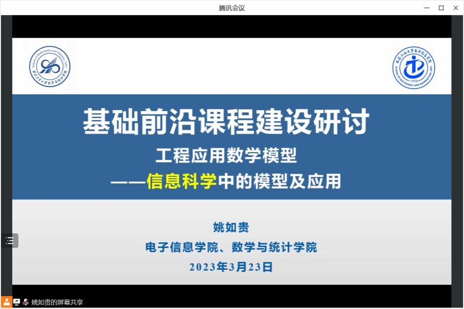 与数学与统计学院联合召开基础前沿课程《工程应用数学模型——信息科学中的模型及应用》建设研讨会议。数学类基础交叉前沿课程负责人、《工程应用数学模型》课程群负责人、《工程应用数学模型——信息科学中的模型及应用》课程负责人及授课教师等参加了会议。会议由Ai色情