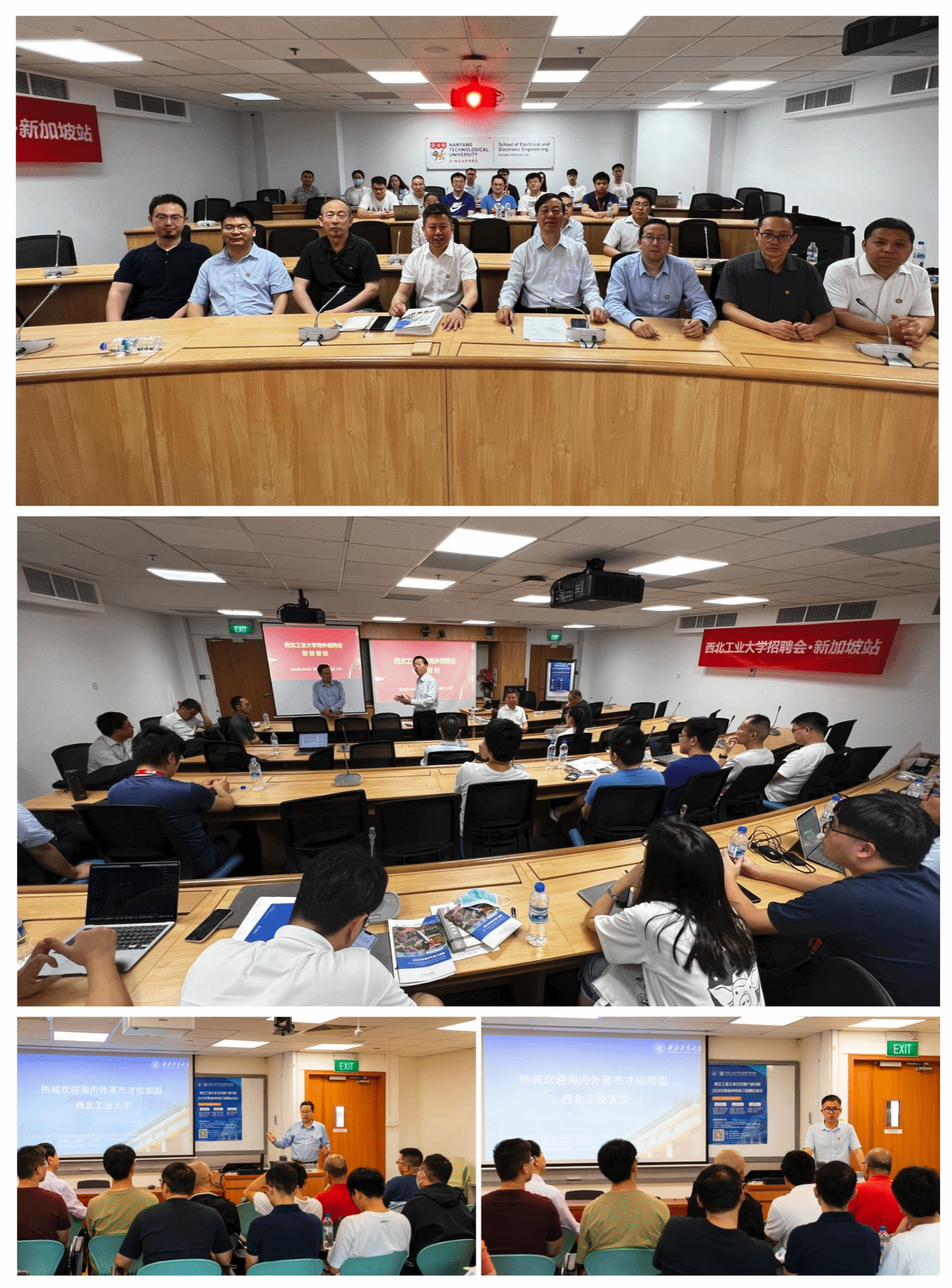 电子信息学院与文化遗产研究院代表团于24日下午在新加坡国立大学、25日上午在南洋理工大学联合开展了两场引才招聘宣讲活动。何明一教授主持招聘会议,院长助理、国家级青年人才戴玉超教授向与会人员讲述了电子信息学院的发展历程与现状并详细讲解了学校和电子信息学院的引才政策,文化遗产研究院院长董文强介绍了文研院的发展状况并对学校引才政策进行了进一步解释,国家级青年人才、电子信息学院刘自成教授向与会人员分享了自己从申报海外人才项目到入职发展以来的心得和经验。
