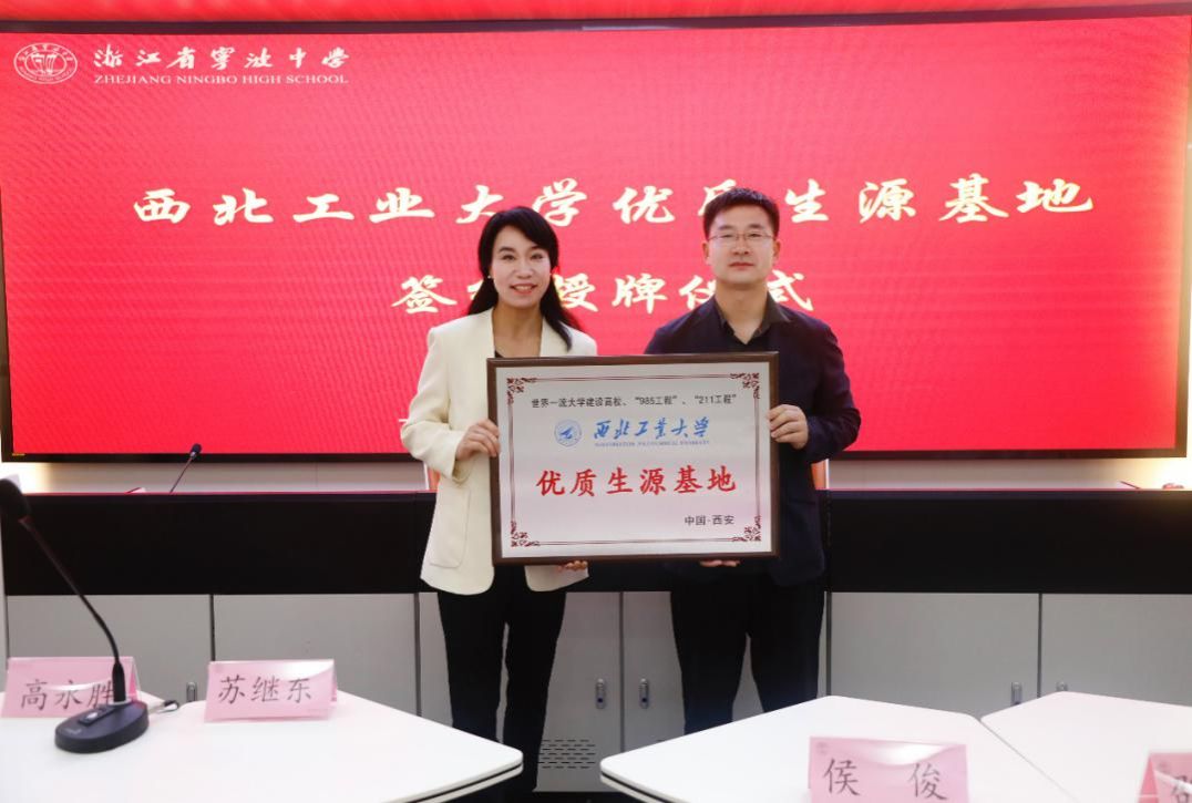 为进一步提升本科生生源质量,吸引更多优秀学子报考我校,4月19日下午,浙江招生组在电子信息学院党委书记侯俊、副院长兼浙江招生组组长高永胜的带领下赴宁波中学开展招生宣讲、优质生源基地挂牌等招生宣传活动。西北工业大学1985级校友,中国航天科技集团卫星型号副总设计师苏继东研究员,西北工业大学郭志巍、胡晓宇一同参加活动。