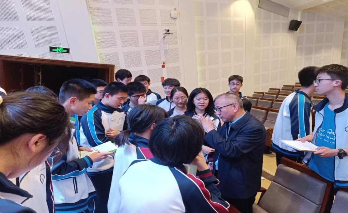在鄞州中学报告厅,苏继东研究员为700余名高一学子做了题为《仰望星空,脚踏实地》的科普报告。他从宇宙大爆炸出发,启发师生思考:人类渺小而宇宙浩瀚,那人生价值是什么?如何实现人生价值?他提出科研道路上必不可少的四种思维,即梦想思维、创新思维、哲学思维和科学思维。他结合自身经历与切身体会就新中国七十年来的航天事业和航天精神进行讲解,重点介绍中国航天发展的三大里程碑:东方红1号、神舟5号和嫦娥1号,以及五大航天精神谱系:“航天传统精神”“两弹一星精神”“载人航天精神”“新时代北斗精神”和“探月精神”。最后,苏继东研究员鼓励同学们传承、弘扬的航天精神,立大志向、入主战场、上大舞台、干大事业。科普报告之后,高永胜和苏继东分别代表学校向鄞州中学赠送运-20飞机模型、仿蝠鲼柔体潜水器模型等礼物。