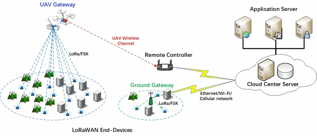 该系统利用无人机的机动性、高度优势以及遥控器的中继特性,有效提升LoRaWAN网络覆盖范围、通信可靠性;LoRaWAN网关与无人机高度集成,基于无人机负载实现网关供电、时间同步、GPS信息获取等功能,并支持GPS拒止环境下的终端定位;该系统能够接入已经部署的LoRaWAN商用网络,形成“高低搭配”的“地空一体化”LoRaWAN网络,显著提升系统的应用可扩展能力;已申请国家发明专利1项。