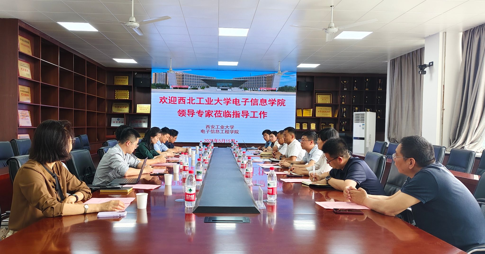 为深化校际合作、共谋学科发展,2025年5月15日下午,西北工业大学电子信息学院党委书记侯俊、副书记高敏、副院长高永胜、陶明亮及教师代表一行8人,赴西安工业大学电子信息工程学院开展座谈调研。活动在西安工业大学未央校区教五楼424会议室举行,双方围绕党建共建、学科建设、人才培养、科研创新等议题展开深入交流。西安工业大学电子信息工程学院党委书记易超、院长陈超波、副院长赵黎、宋晓茹等10人出席活动,会议由易超主持。
