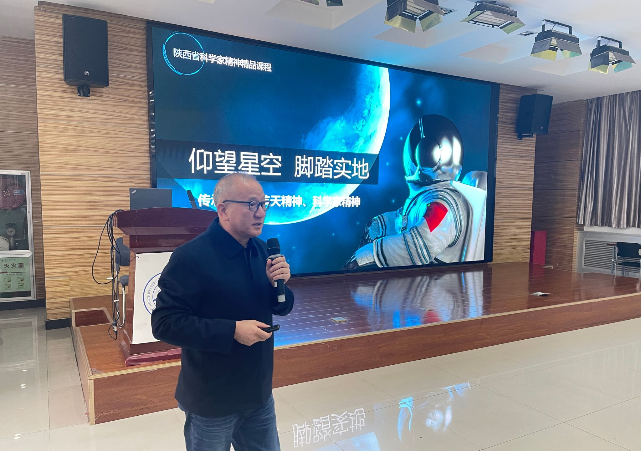 2024年11月7日,电子信息学院95级校友、中国航天科技集团苏继东研究员受邀来到《电子信息技术》课堂,为本科生讲授以“仰望星空,脚踏实地——传承与弘扬航天精神、科学家精神”为题的研讨课,课程授课教师万国宾教授、2024级班主任徐钊副教授,以及近200名大一本科生共同聆听了这次精彩纷呈的课程。