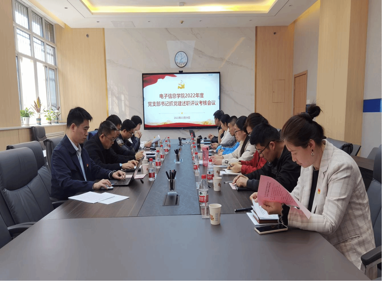 为进一步提升基层党建工作质量,推动全面从严治党向基层延伸,按照学校《关于开展2022年度党支部书记抓党建述职评议考核工作的通知》文件要求,3月9日下午,电子信息学院在学院楼119会议室召开2022年度教工党支部书记抓党建工作述职评议考核会。柔性电子研究院党委书记高建伟、自动化学院党委副书记(主持工作)李伟林,学院领导班子成员侯俊、高敏、姚如贵,教职工党支部书记及支委参加了会议。会议由学院党委书记侯俊主持。