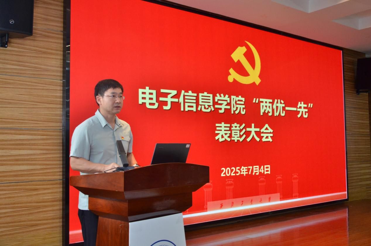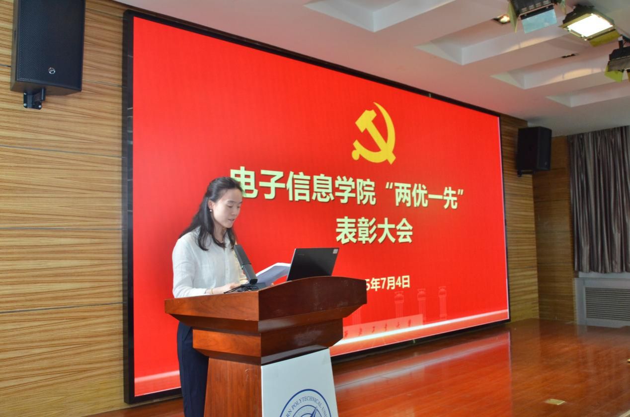 7月4日上午,电子信息学院在长安校区召开“两优一先”表彰大会。学院领导班子成员、党委委员、各党支部书记和支委以及获奖先进个人代表及师生党员代表参加大会。大会由学院党委副书记高敏主持。