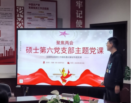 为深入学习贯彻全国两会会议精神,更好地理解政府工作报告, 2024年3月15日晚,电子信息学院硕士第六党支部在学院432会议室开展了关于全国两会政府工作报告重点解读专题党课。本次党课由硕士第六党支部书记陈爽同志主持,支部全体党员参加。
