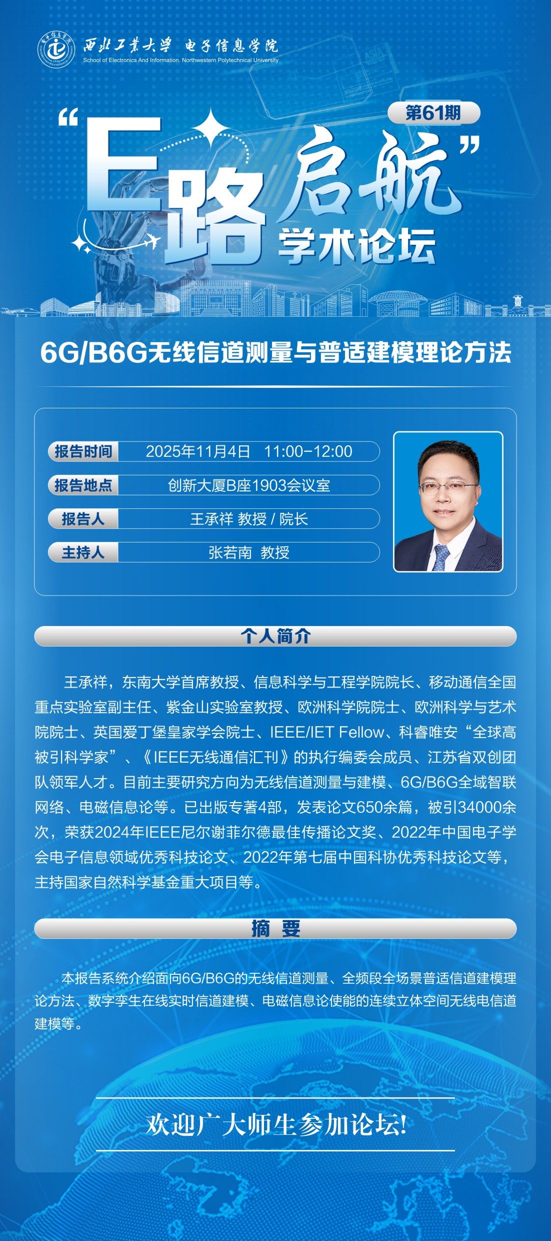 “E路启航”学术论坛第61期——6G/B6G无线信道测量与普适建模理论方法