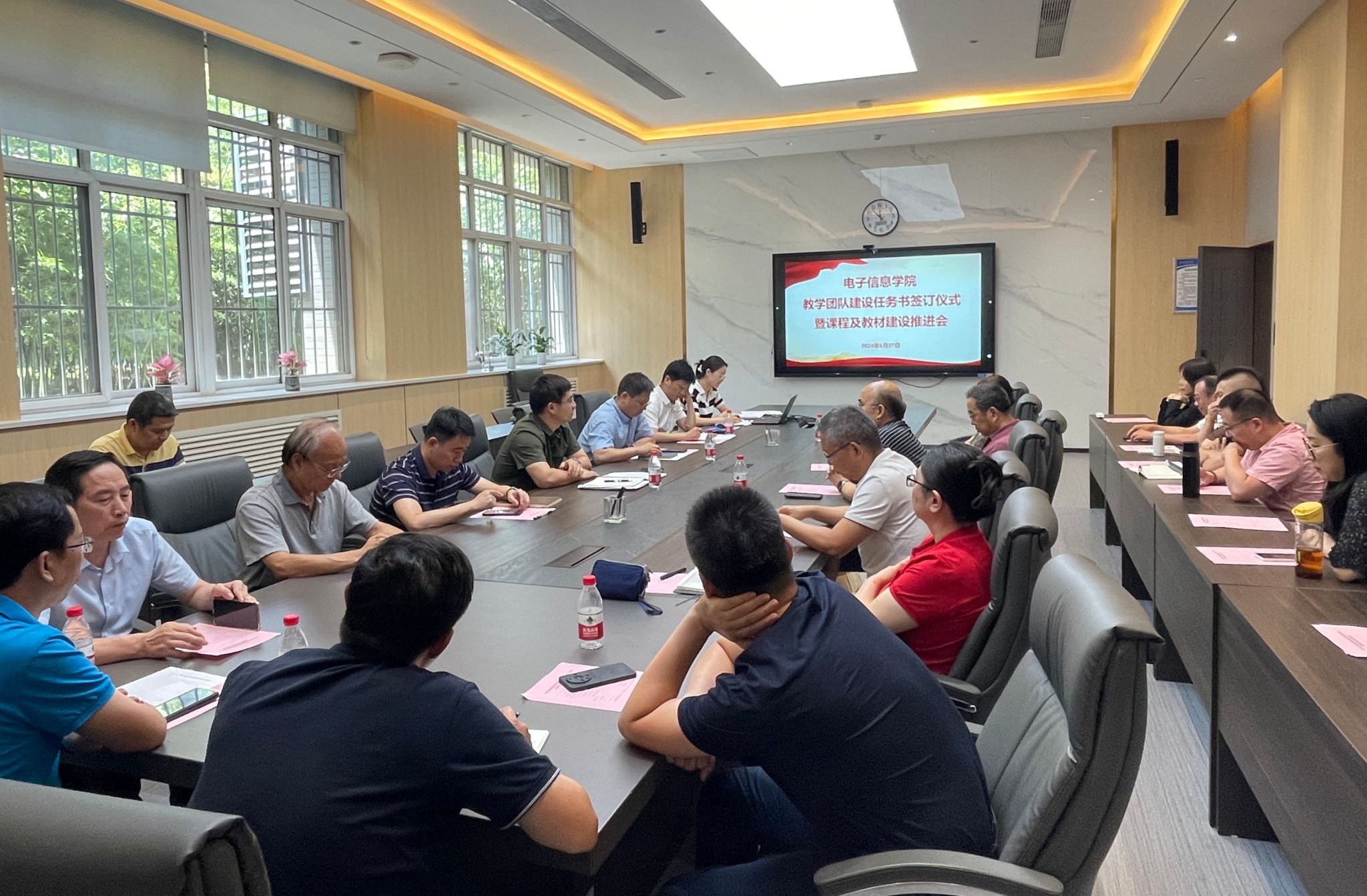 2024年度本科教学团队建设支持计划,明确了各教学团队2024年度的目标任务,并代表学院与电路基础等7个基础课程教学团队签订任务书。侯俊代表学院与集成电路等11个专业课程群教学团队签订任务书。
