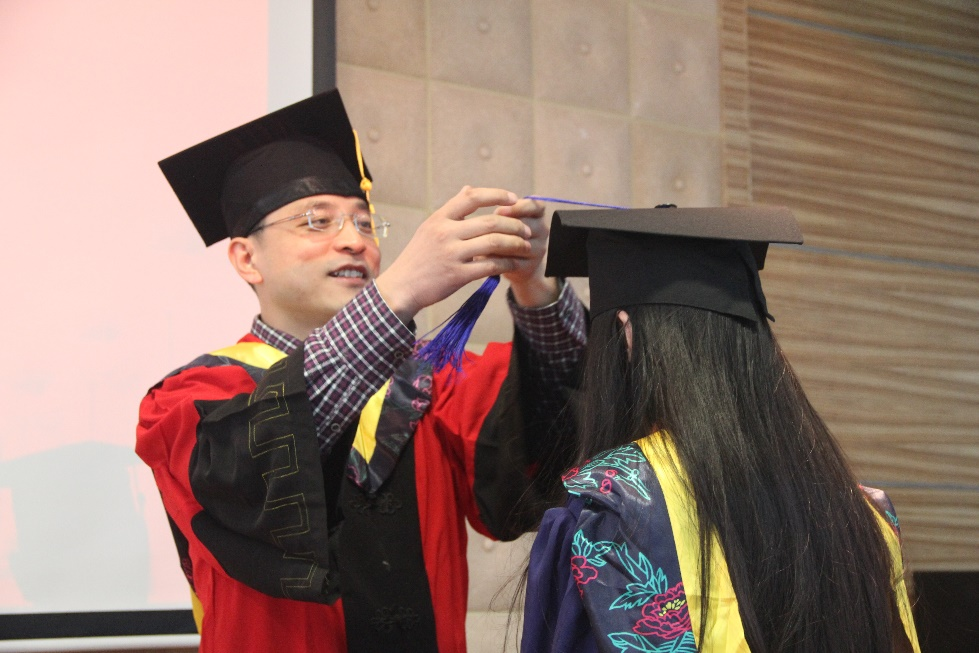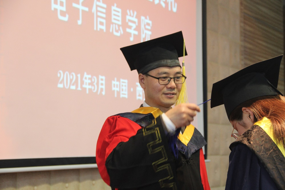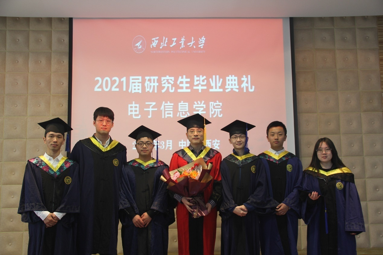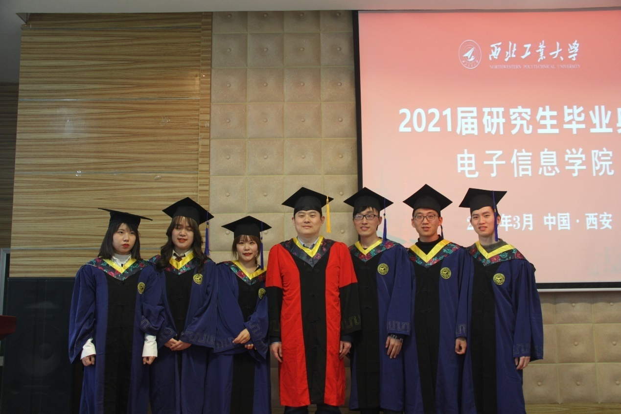 典礼最后,王伶、冯晓毅、周巍、张若南等四位老师为获得硕士学位的学生援正流苏,合影留念,为同学们在西工大的学习生活画上最圆满的句号。