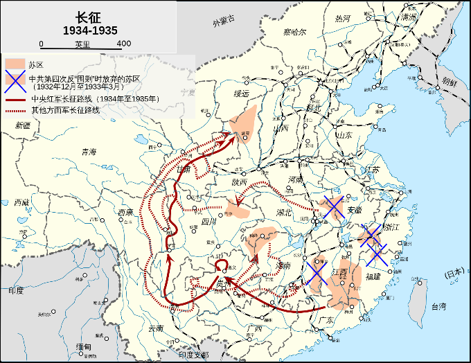 (图为长征转移路线图)